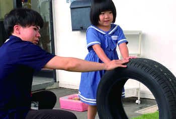 - ②こども参観日 お子さんの夏休み期間を利用して、お父さんお母さんの職場見学の他、名刺交換やピット体験会などを実施し、職場への理解や家族交流を深める取り組みを実施しています。