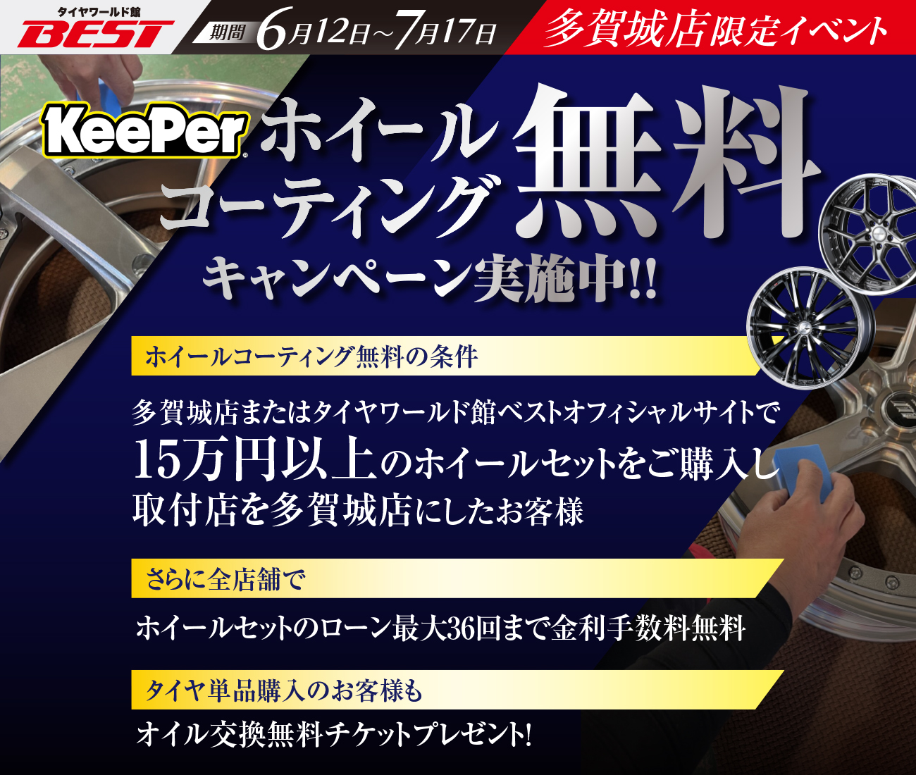 15万円以上のホイールセット購入+取付店をベスト多賀城店選択でホイールコーティング無料施工中!