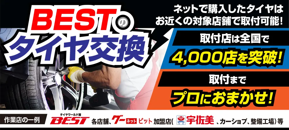 ご購入いただいた商品を取付店へ直送いたします。 詳細は「BESTのタイヤ交換」をご確認ください。